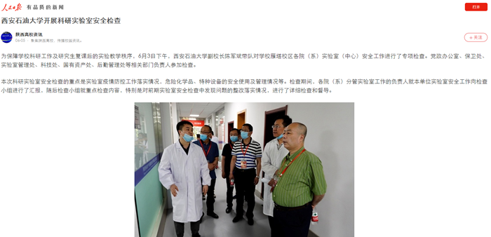 【人民日報APP】西安石油大學(xué)開展科研實驗室安全檢查