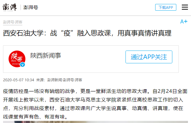 【澎湃新聞】西安石油大學(xué):戰(zhàn)“疫”融入思政課,用真事真情講真理