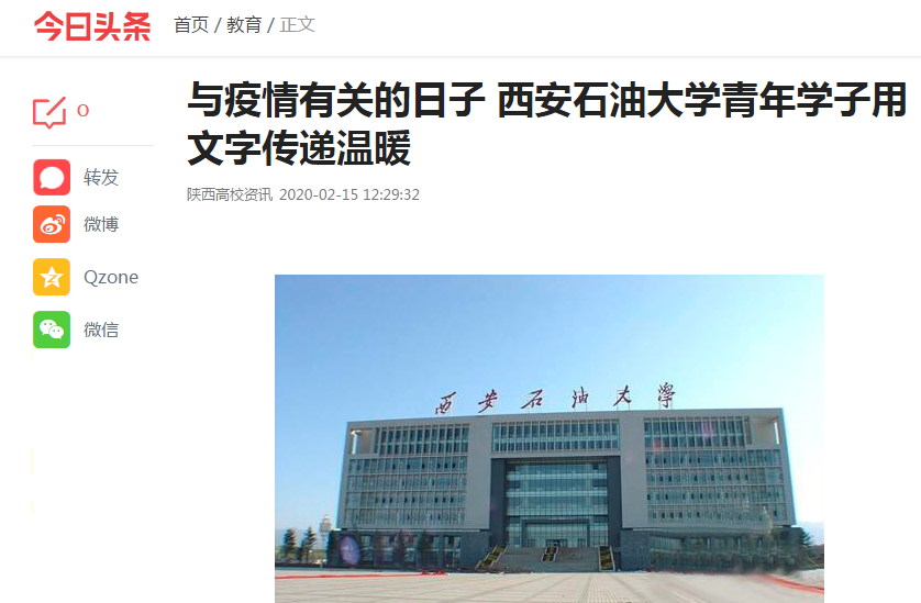 【今日頭條】與疫情有關(guān)的日子:西石大青年用文字傳遞溫暖
