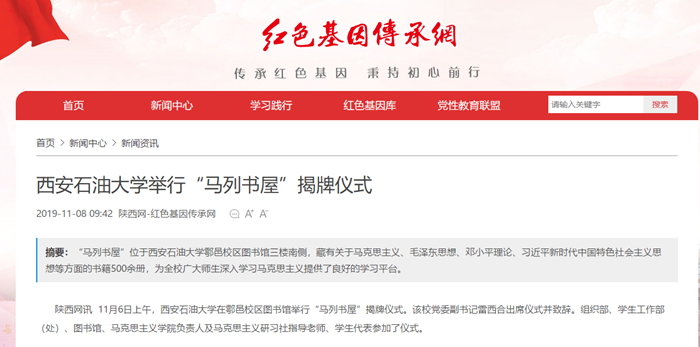 【紅色基因傳承網(wǎng)】西安石油大學(xué)舉行“馬列書屋”揭牌儀式