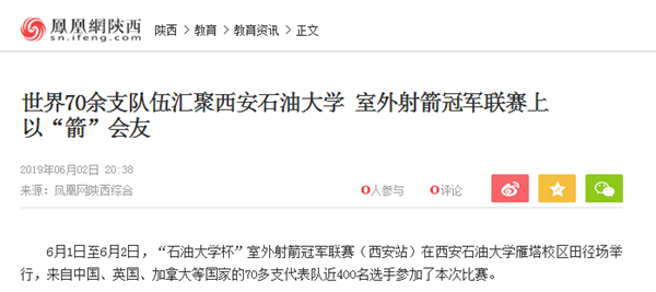 【鳳凰網(wǎng)】世界70余支隊伍匯聚西安石油大學(xué) 室外射箭冠軍聯(lián)賽上以“箭”會友
