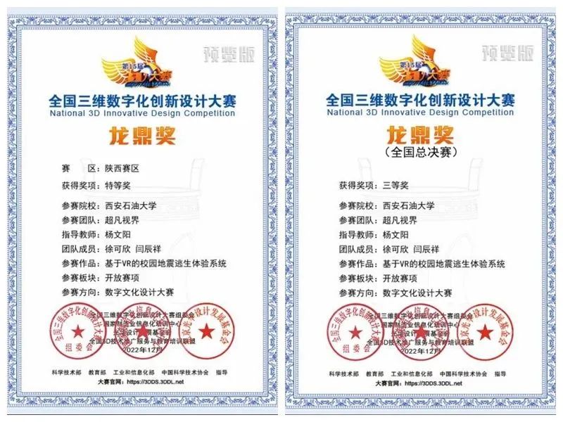 近日,土耳其東南部地區(qū)發(fā)生連續(xù)7.8級(jí)地震,造成較大人員傷亡。在地震中,我們?nèi)绾慰茖W(xué)避險(xiǎn)將傷害降到最低呢?我校徐可欣和閆辰祥2位同學(xué)在計(jì)算機(jī)學(xué)院教師楊文陽的指導(dǎo)下組成“超凡視界”團(tuán)隊(duì)設(shè)計(jì)了數(shù)字文化設(shè)計(jì)類作品——《基于VR的校園地震逃生體驗(yàn)系統(tǒng)》,致力于提高地震中防災(zāi)避險(xiǎn)的意識(shí)和能力,獲得陜西賽區(qū)特等獎(jiǎng)、全國總決賽三等獎(jiǎng)的佳績。