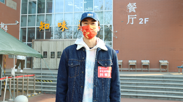 六點(diǎn)半的校園異常寒冷,他們提前布置好場(chǎng)地,為考研同學(xué)們指引排隊(duì)位置,測(cè)量體溫,協(xié)助醫(yī)護(hù)人員進(jìn)行“一碼通”查驗(yàn)。在封控區(qū)考場(chǎng)維持秩序的他們和醫(yī)護(hù)人員面臨著類似的風(fēng)險(xiǎn)。但責(zé)任面前,他們沒有遲疑,圓滿完成了研究生考試期間學(xué)校的各項(xiàng)任務(wù)。