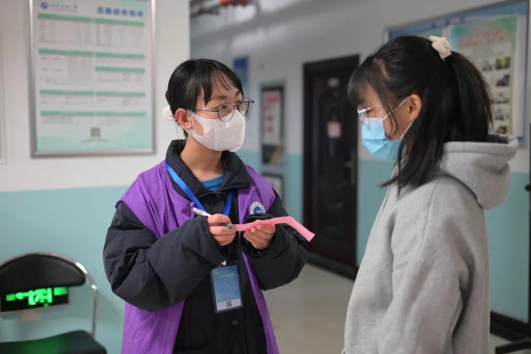 早上六點五十起床,頂著凌冽的寒風開始工作。溫暖的床鋪、美妙的夢境、豐盛的早餐……這些能夠讓人舒適愜意的東西在朝著李蔓同學招手,但她決然選擇放棄安逸,堅持守衛(wèi)在17號宿舍樓門口,為有外出需要的同學辦理登記,牢牢守護校園疫情防控的第一道防線。