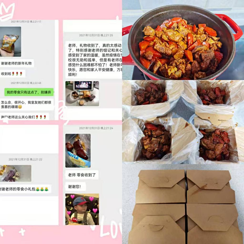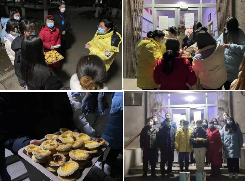 有一種甜刻入記憶,有一種香沉入心田。經(jīng)濟(jì)管理學(xué)院人力黨支部朱海娟老師用了整整一下午的時(shí)間烘焙了兩烤箱的蛋撻,并且和楊睿娟老師一同將剛出爐的食物第一時(shí)間送到研究生志愿者手中。夜幕襯托著食物騰騰熱氣暖到心間,冬日的蕭瑟抵不過(guò)蛋撻入口的香甜,志愿者一天的辛苦也隨著滿滿的甜蜜在冷風(fēng)中消逝,金黃的蛋撻不僅甜了嘴巴更融了寒冷。一個(gè)人遇到好老師是人生的幸運(yùn),一個(gè)學(xué)校擁有好老師是學(xué)校的光榮,一個(gè)民族源源不斷涌現(xiàn)出一批又一批好老師則是民族的希望。經(jīng)濟(jì)管理學(xué)院的老師踐行了教師的職責(zé)與使命,他們以身作則的工作態(tài)度教會(huì)學(xué)生盡職盡責(zé),他們無(wú)微不至的體貼與關(guān)懷更帶給了學(xué)生愛與希望,如果疫情是電閃雷鳴的狂風(fēng)暴雨,那經(jīng)管師生情就是雨后最美的彩虹。