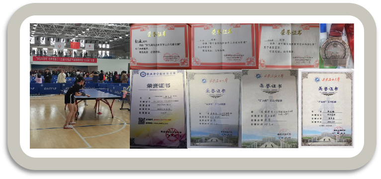 (3)體育競賽方面:黃凡薇等同學連續(xù)兩年榮獲陜西省乒乓球錦標賽女子團體第五名,黃凡薇和楊成斌等同學分別榮獲石油杯乒乓球聯(lián)賽(女子團體賽和男子團體賽)第二名和第三名,黃凡薇和楊成斌分別榮獲陽光體育節(jié)女子和男子乒乓單打冠軍和亞軍。郭志強等同學在校級“石油杯”足球賽和“足協(xié)杯”足球賽中均榮獲季軍。尤婉清等同學榮獲女子籃球聯(lián)賽第三名,張藝茹同學在羽毛球比賽上獲得季軍。