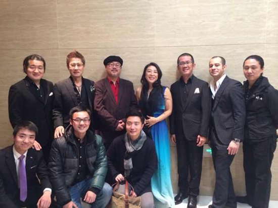 (日語教師陳旭在2014年小野麗莎西安音樂會結(jié)束后與歌手團隊合影)