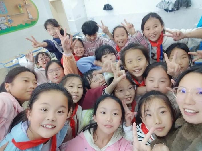 在這彌足珍貴的一年支教的日子里,我站上了我夢(mèng)寐以求的三尺講臺(tái),每節(jié)課上孩子們那一雙雙眼睛里看到的是知識(shí),而我看到的是純潔與坦誠(chéng)。這段時(shí)間對(duì)我來(lái)說(shuō)最大的收獲是擁有了一種強(qiáng)烈而又真實(shí)的幸福感和滿足感。這種幸福來(lái)源于學(xué)生對(duì)我的認(rèn)可與喜愛(ài),是從什么時(shí)候開(kāi)始的呢,是他們問(wèn)我“老師你明年還帶我們嗎”“老師我們班同學(xué)都可喜歡你了”“老師你什么時(shí)候走啊”“你走的時(shí)候可一定要給我們說(shuō),不要偷偷走”的時(shí)候,是上課前有學(xué)生專門來(lái)辦公室找我跟我一起去教室的時(shí)候,是我們一起合照的時(shí)候孩子們天真而純潔的笑臉,是下課時(shí)一群五年級(jí)的女生抱著我不讓我走的時(shí)候,也許是給二年級(jí)上社團(tuán)活動(dòng)課,走過(guò)二年級(jí)的樓道被學(xué)生簇?fù)砥饋?lái)打招呼的時(shí)候,這段時(shí)間的點(diǎn)點(diǎn)滴滴在我腦海中留下了深刻的烙印。