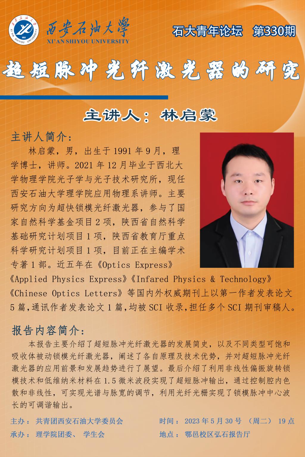 石大青年論壇第330期:超短脈沖光纖激光器的研究