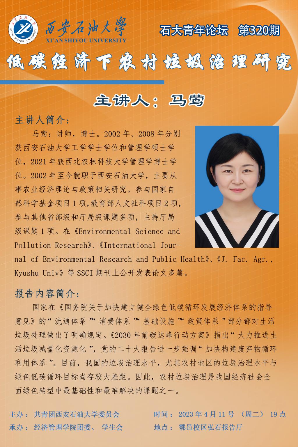 石大青年論壇第320期:低碳經(jīng)濟(jì)下農(nóng)村垃圾治理研究