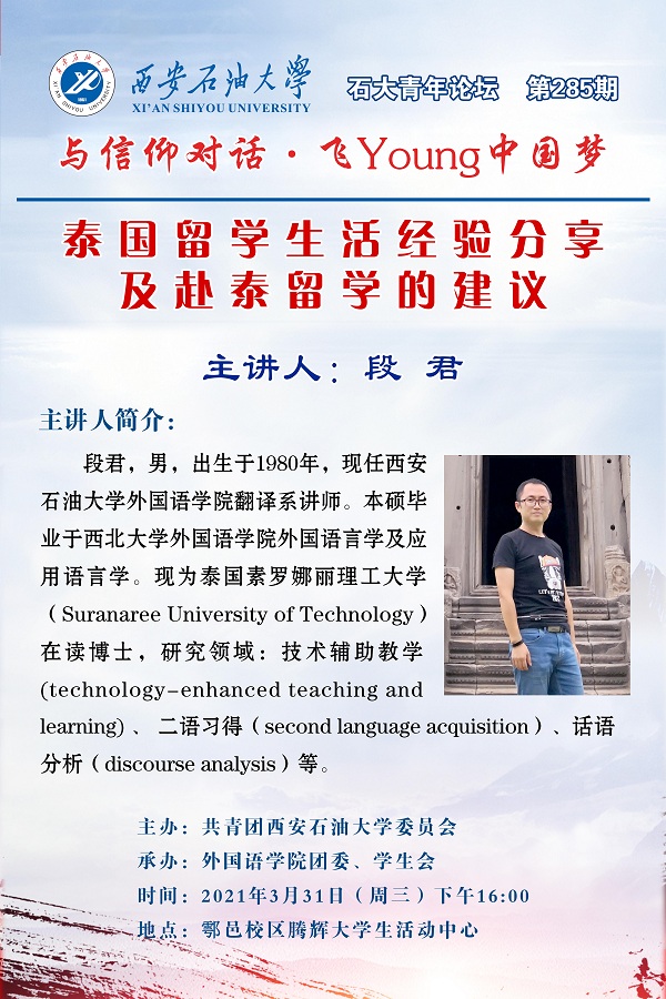 石大青年論壇第285期:泰國留學(xué)生活經(jīng)驗(yàn)分享及赴泰留學(xué)的建議