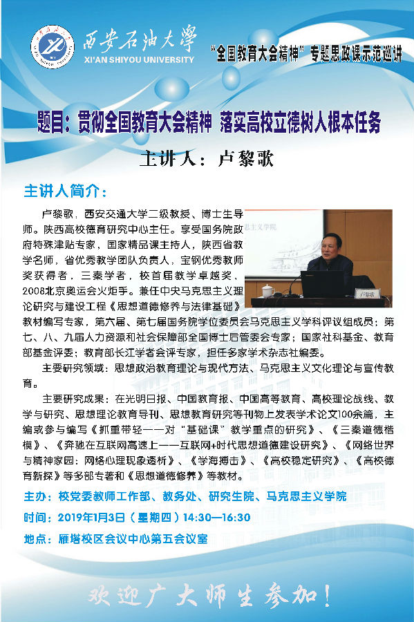 報告題目:貫徹全國教育大會精神 落實高校立德樹人根本任務(wù)