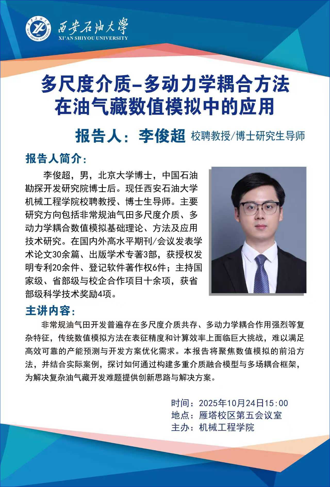 報告地點:西安石油大學(xué)雁塔校區(qū)學(xué)術(shù)報告廳